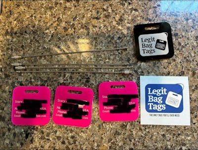 This is a second set ordered. Obsessed with these luggage tags! The bright color plastic adds a vibrant touch, and having my full name, email, and phone number laser engraved ensures durability and just the right amount of information needed. Practical, stylish, and a perfect solution for hassle-free travel. Highly recommend these well-crafted and personalized tags! Have it bright orange and lime. First order was a trial, and i ended up disclosing too much personal information. Depending on travel destination, i use one set or another. Highly recommend for frequent travelers.