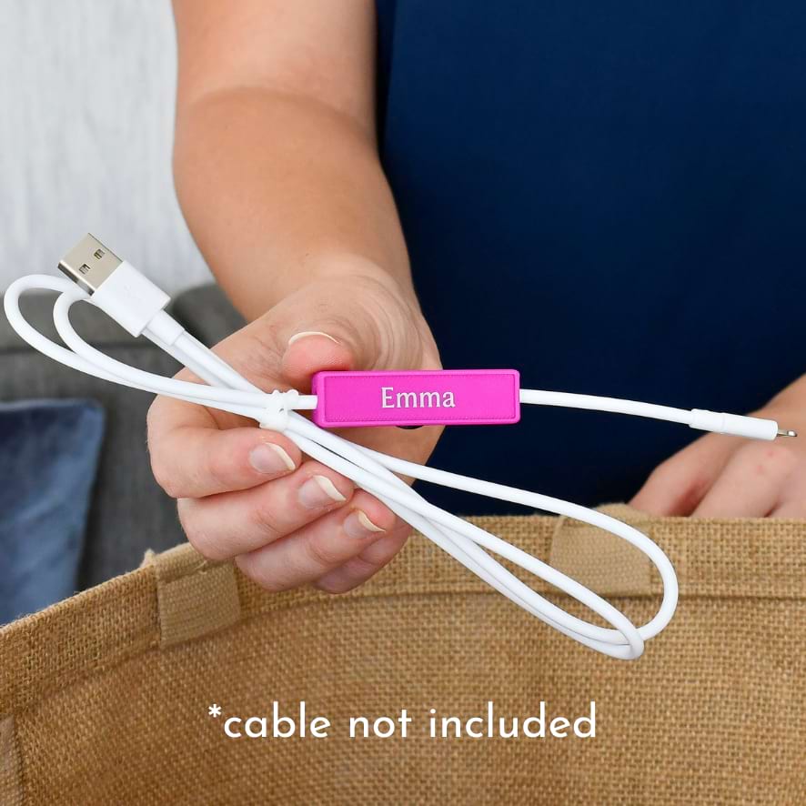 Introducing snapTAGs™, our custom-made cable identifier tags designed for personalized cable management and organization. With snapTAGs™, prevent mix-ups using personalized label sleeves crafted with your own text. Unlike other wrap-around cable labels, snapTAGs™ snap firmly onto cables without sliding or shifting, staying exactly where you place them. They offer universal compatibility, fitting most skinny charging cables, cords, and wires up to 4.5mm in diameter, including iPhone and Mac laptop chargers. The magnetized base, paired with a magnetic anchor, ensures snapTAGs™ remain securely in place, providing optimal cable organization. Ideal as thoughtful and practical gifts, snapTAGs™ are perfect for students, graduates, kids, teens, and members of large families, helping them keep their electronic cables organized and easy to identify.